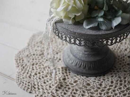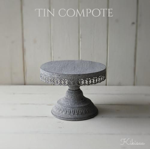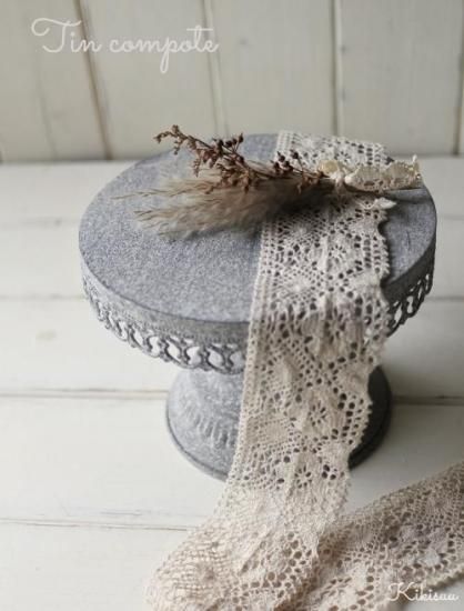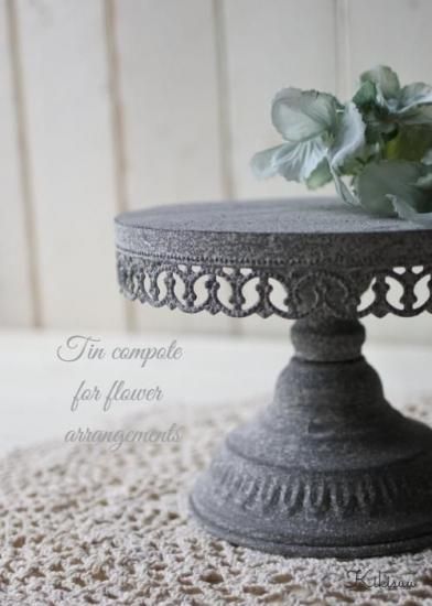 アンティークブリキポット シャビーな金属製花器 コンポート
