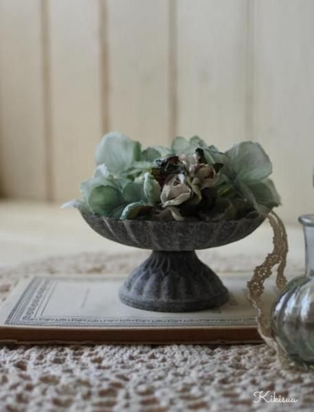 シャビーコンポート ミニ 金属製の花器 ブリキ皿型 ディスプレイ