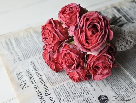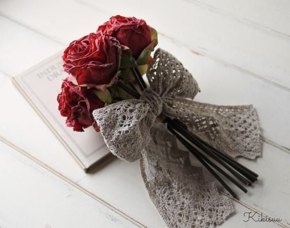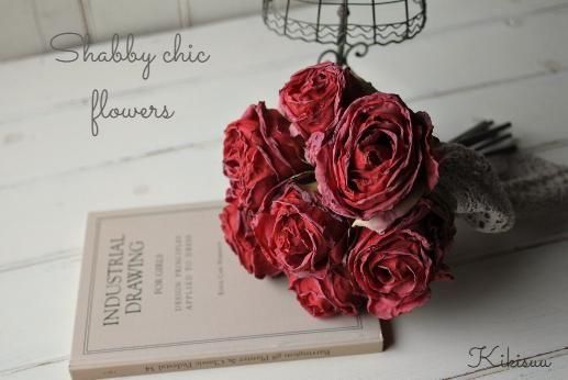 アートフラワー Shabby chic Bouquet ドライフラワー風の造花 赤いバラのブーケ