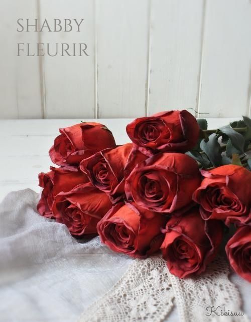 Shabby fleurir Rose 赤 シャビーなアートフラワーローズ ドライフラワー風