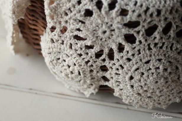 ナチュラルな生成りの手編みカバーです。 カバーやテーブルマットとしてもお使いいただけます。