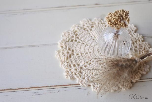 Doily Daisy ドイリーデイジー 薄ベージュの花柄レース編みドイリー