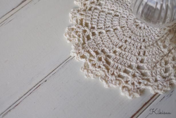 手編みのレース模様のナチュラルドイリー。